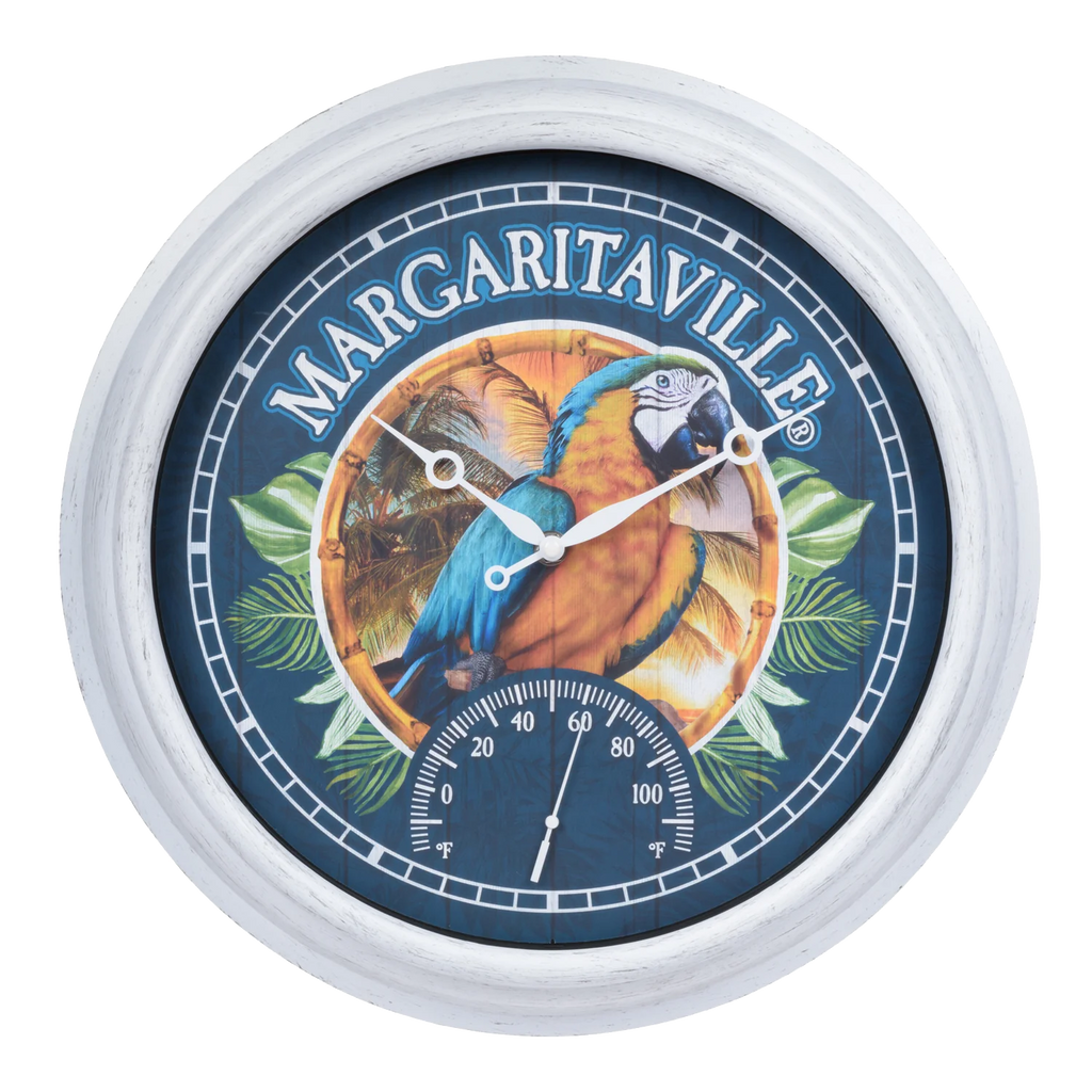 No time like the present, break out your Hawaiian shirts and shorts while slipping into your boat shoes.  Think ocean breezes, swaying palm trees, and tropical music whether you're relaxing in the sun by the pool or unwinding indoors, this clock is a must-have for your decor. Keep your eye on the temperature as well as the time with this whimsical Margaritaville® inspired fade-resistant dial, UV protective glass, and weather-resistant clock.  If it’s only half past the hour, not to worry it’s still the right time to bring a bit of paradise into your home today!